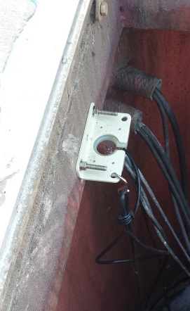 – but because of the geometry of the wetwell we hung the 7.5ft FOGRod from a hook under the metal plate (to the left of the drill in the above photo). The bracket & cleaning pad is for when the FOGRod needs to be cleaned – we just pull it up through the cleaning pad/wiper. The FOGRod cable was pulled through conduit into the control panel.