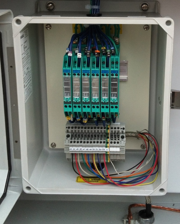The LIT and 24v power supply in the top right and the intrinsically safe barriers at the bottom: